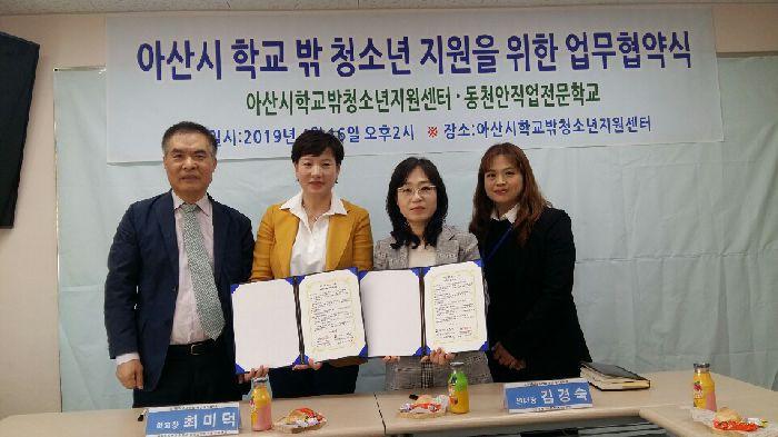 2019년 4월 16일 화요일, 오후 2시 동천안(희망) 직업전문학교 교장(최미덕)은 아산 꿈드림 센터에서 「아산꿈드림센터 협약식」을 가졌다.