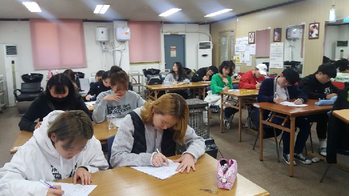 학생들은 어느때보다도 진지한 표정으로 미용이론을 듣고,