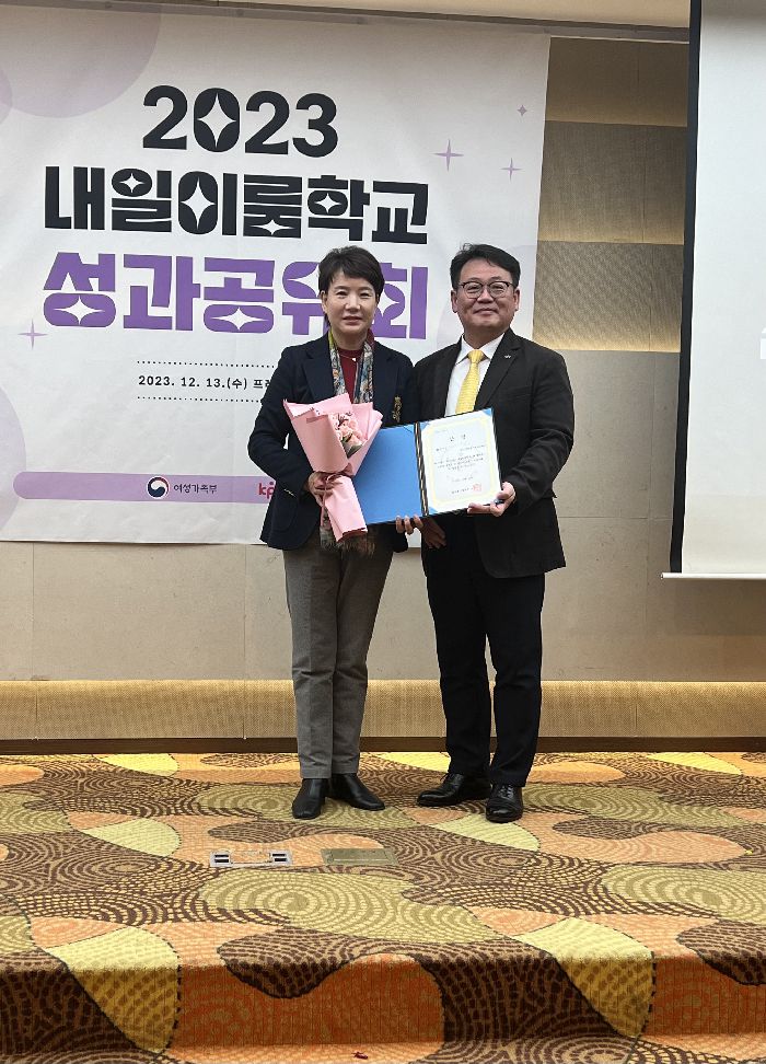 2019년도에 이어 2023년도 여성가족부 주관 한국생산성본부에서 운영하고 있는 내일이룸학교 운영기관 중 최우수 기관에 선정되어 이를 공유하고자 합니다~~^^
